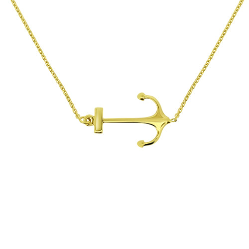 You can easily wear this yellow gold anchor east to west necklace all the time, and it's perfect to layer!
