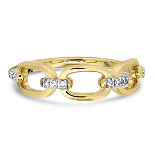 "Link it up" with this trendy link yellow gold and diamond ring.